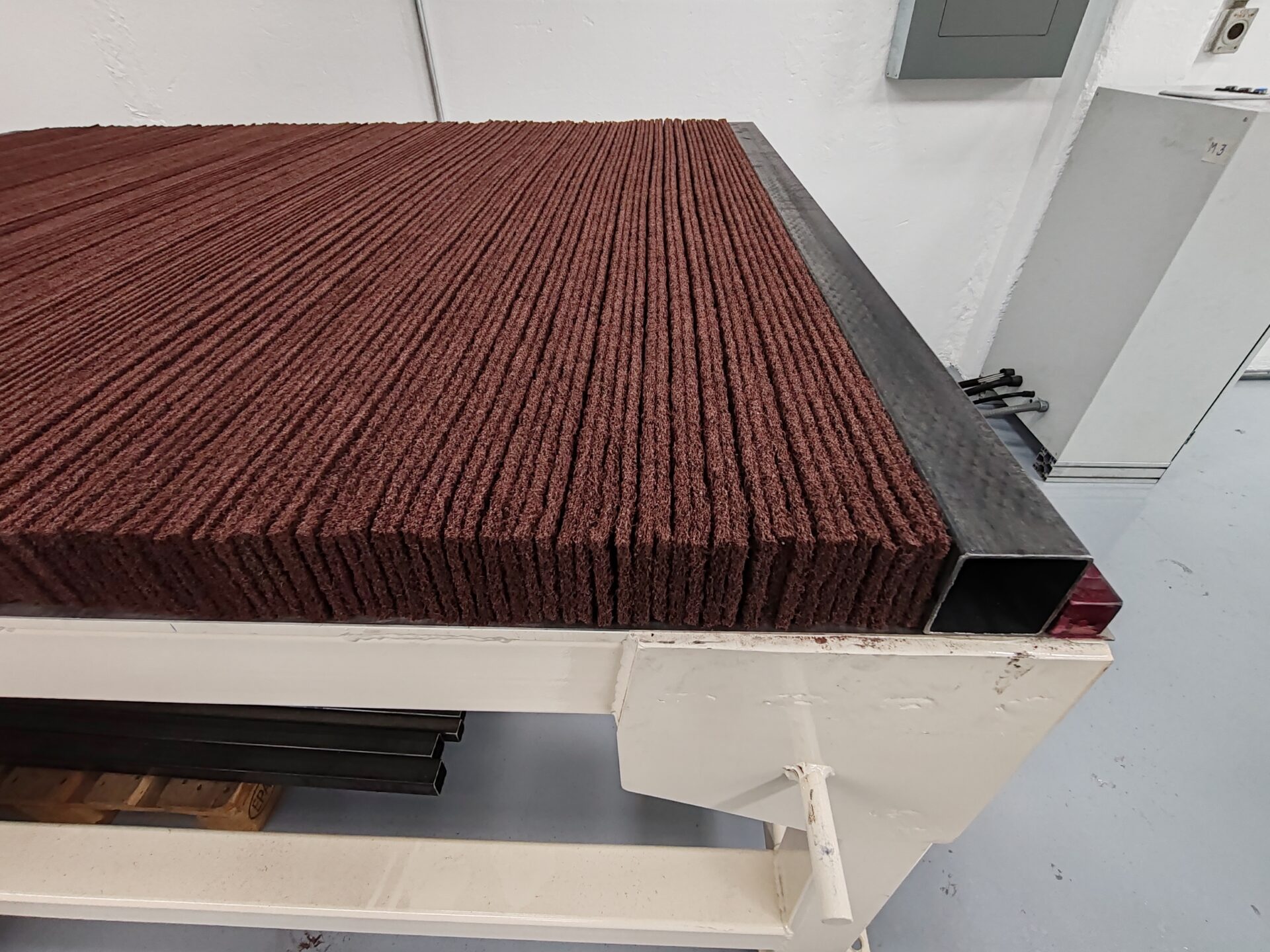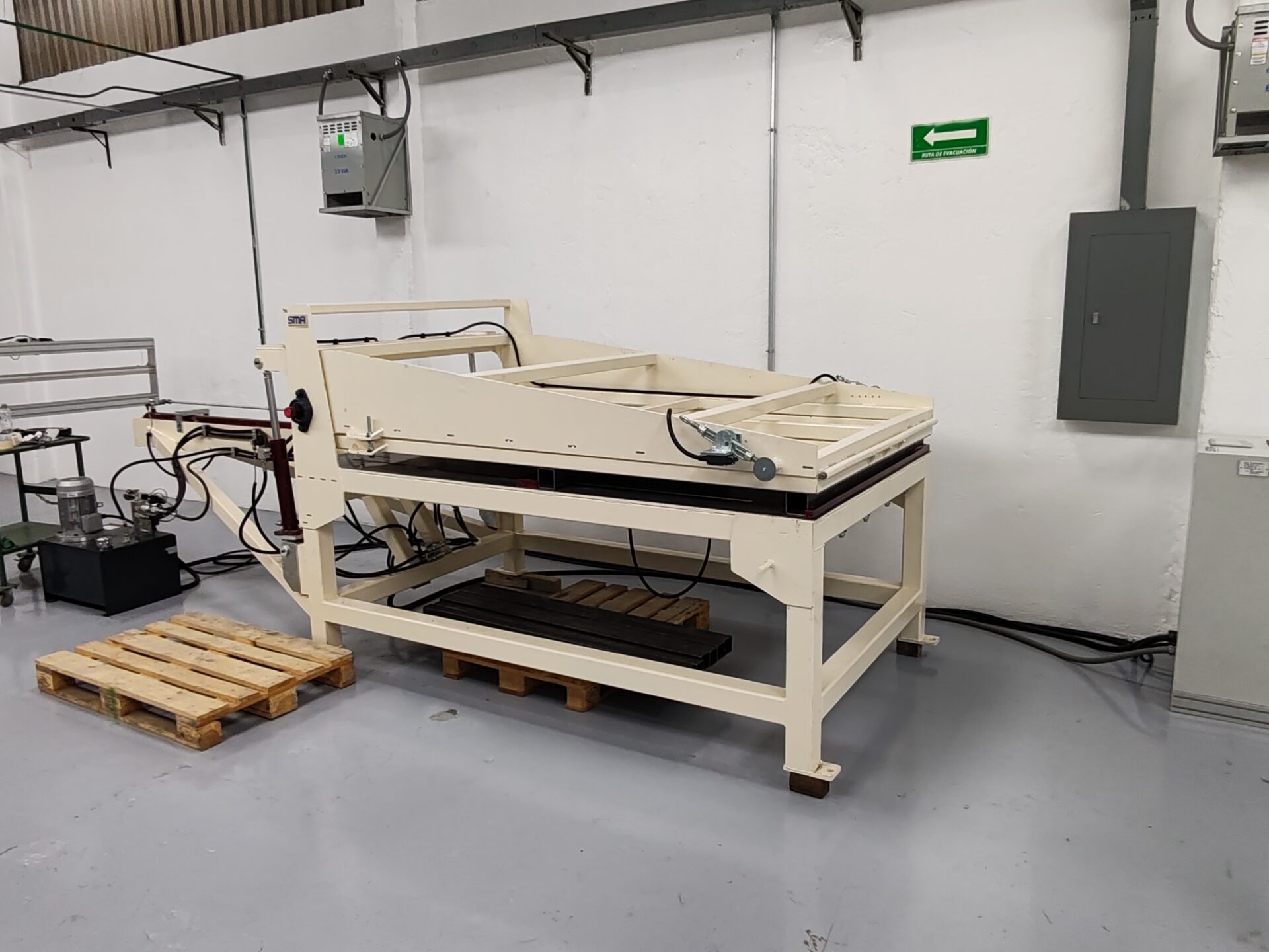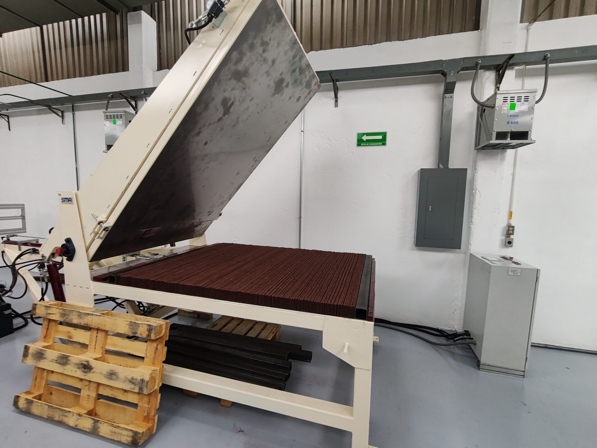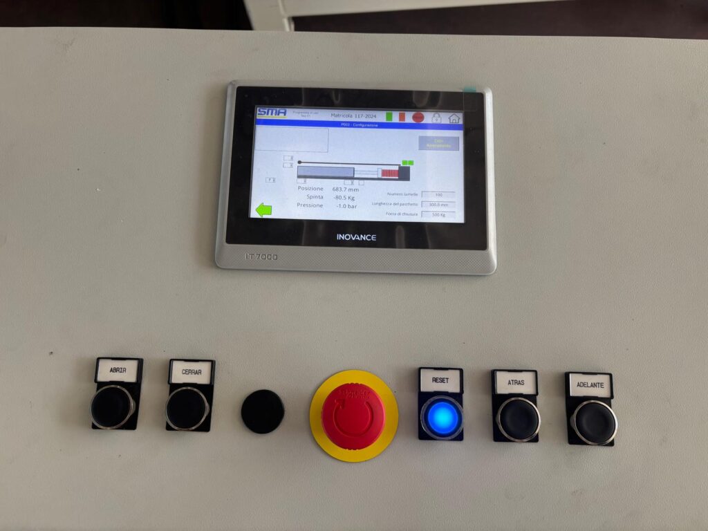 1500mm standard length. A hydraulic cylinder presses the material and two operators put it into the moulds. It is a very flexible option that allows to manufacture numerous sizes.