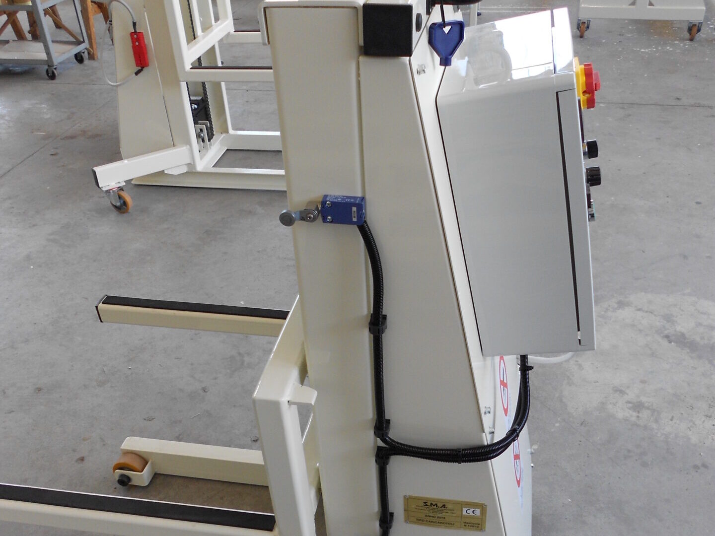 The CR semi-electric forklift combines 12V battery electric lifting to the manual translation of the machine. It is the best option for the handling of medium to light weights: forks can be lifted or lowered by means of push button switches that are found on the machine’s body. This piece of piece of equipment can be combined with the SMA-SRW Slitter/Rewinder.