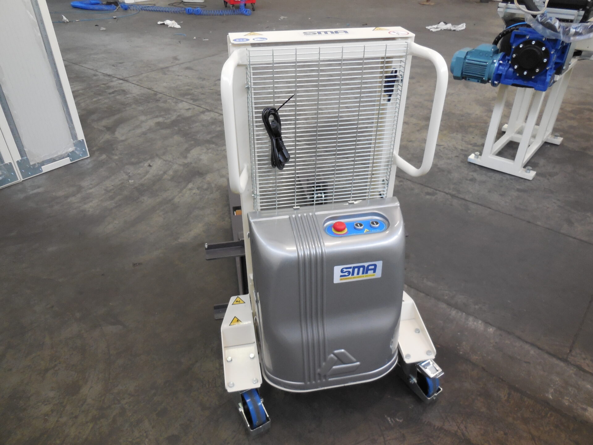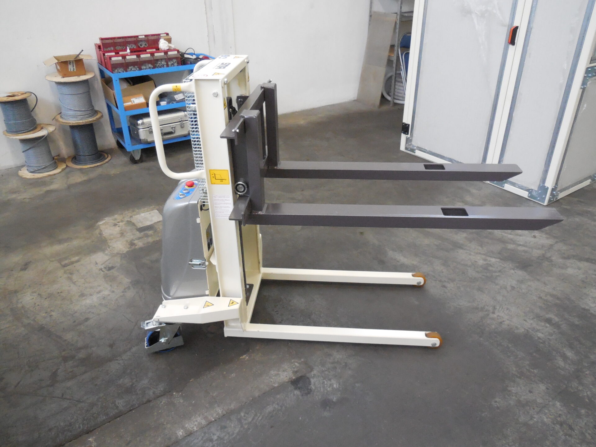 The CRM semi-electric forklift combines 12V battery electric lifting to the manual translation of the machine. It is the best option for the handling of medium to light weights: forks can be lifted or lowered by means of push button switches that are found on the machine’s body. This piece of equipment can be combined with the SMA-SRW Slitter/Rewinder.