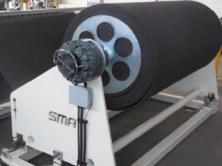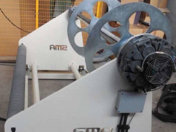 Unwinding unit for jumbo rolls; three sizes available: for 500kg, 1000kg and 1500kg coils. The metal framing is made via machining process. Its purpuse is the unwinding of rolls of abrasive material, and it features a drive control system. this unit can be equipped with automatic alignment, whose control is made possible by a small operator panel. this unit is composed of braking group with ventilated disc, two tilt-and-turn supporta, 3” expanding shaft and a dia.120mm, rubber-coated return roller. This unit can be integrated to all of S.M.A.’s slitting machines.