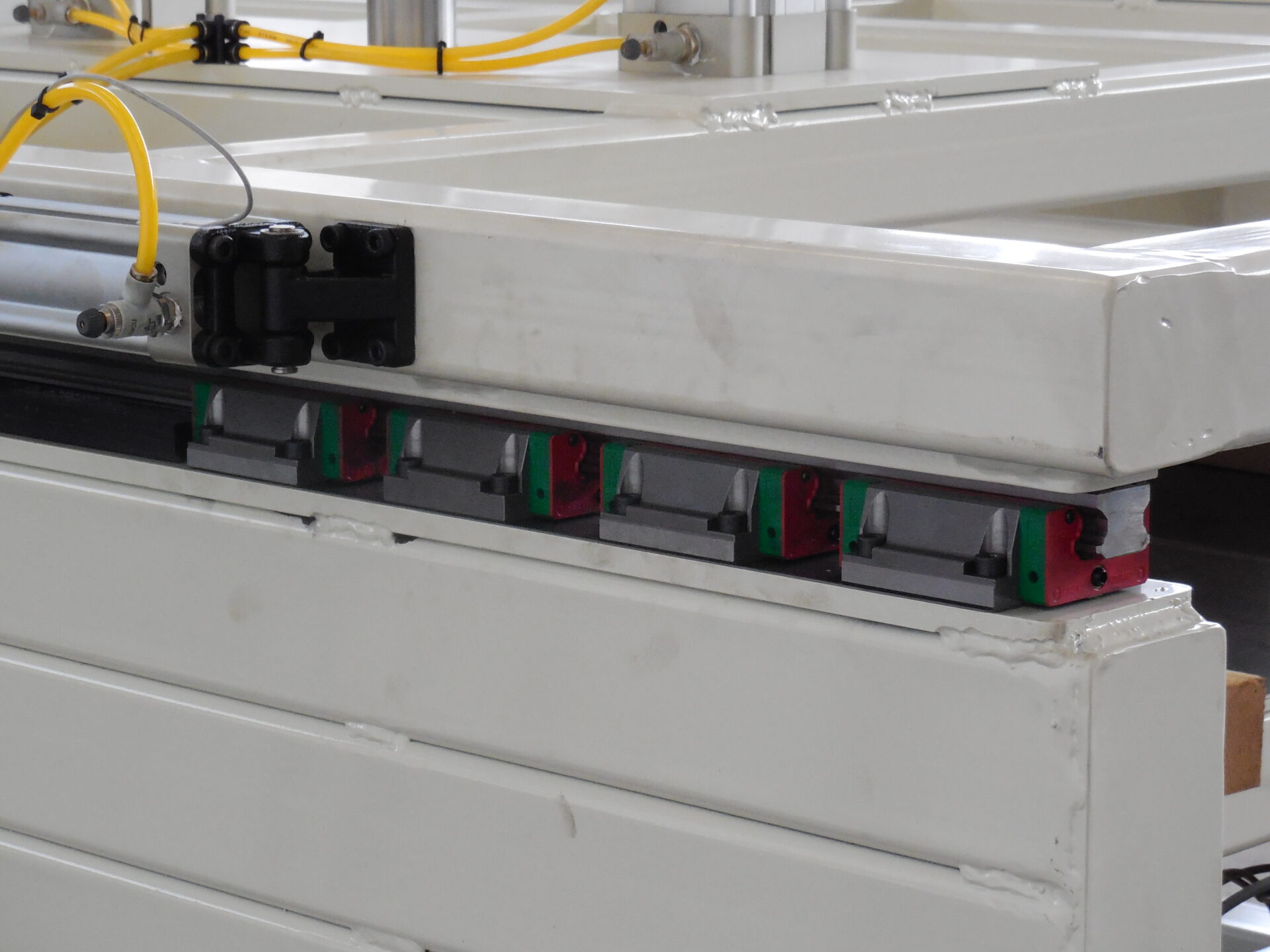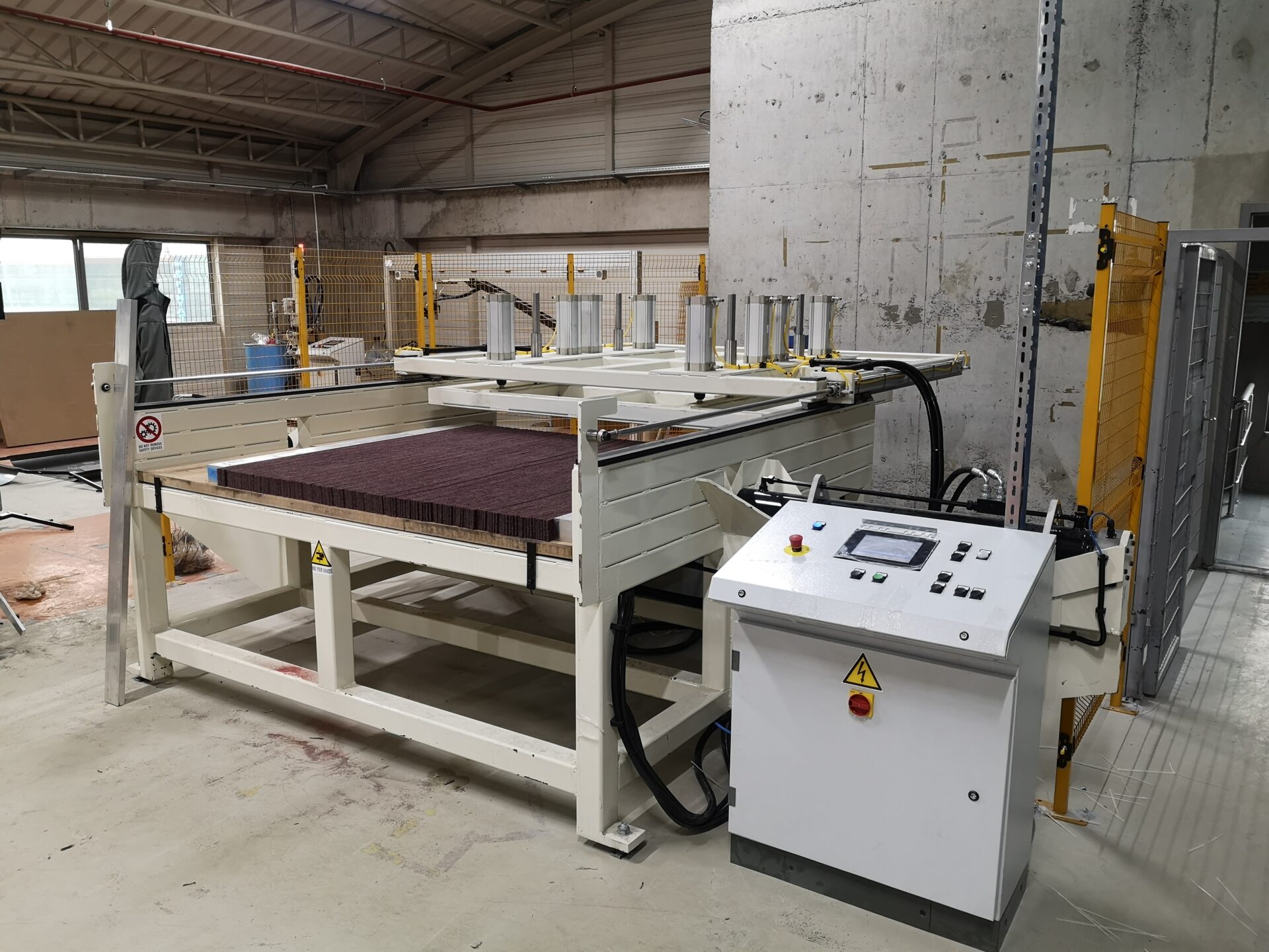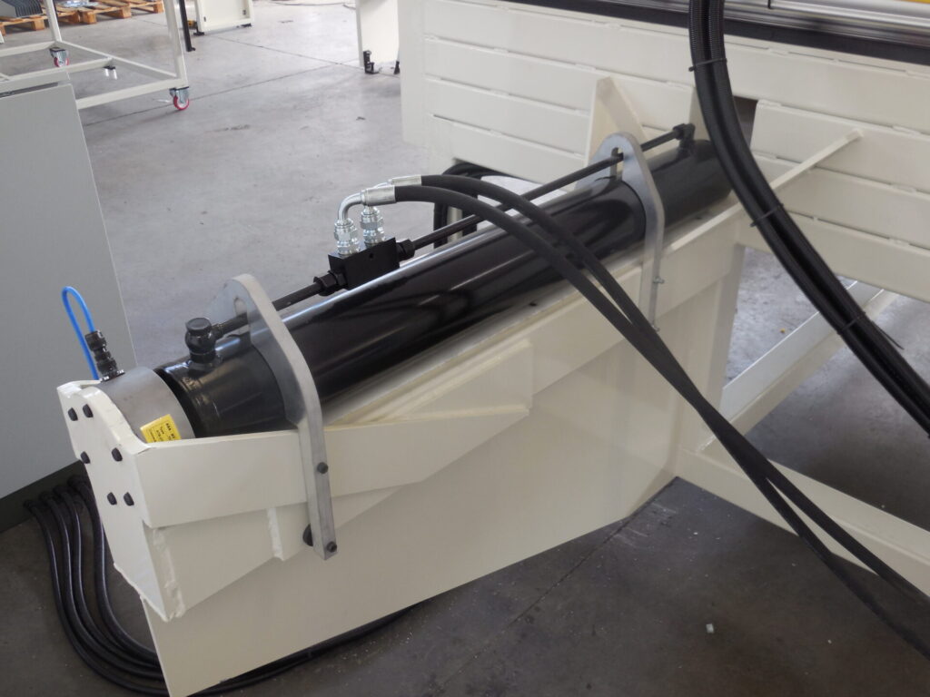 This is a machine for the production of abrasive rollers; maximum working sizes are 500mm diameter and 1700mm stan-dard length. This new-concept machine presses the material by means of four hydraulic cylinders placed at the side of the machine, thus improving the final quality of the roller. This system, developed by S.M.A., operates by opposed compression; thanks to it, rollers are more compact and homoge-neous at every step. With the G-Press option, through specific load cells, it is possible to control compression and its repeatabili-ty.