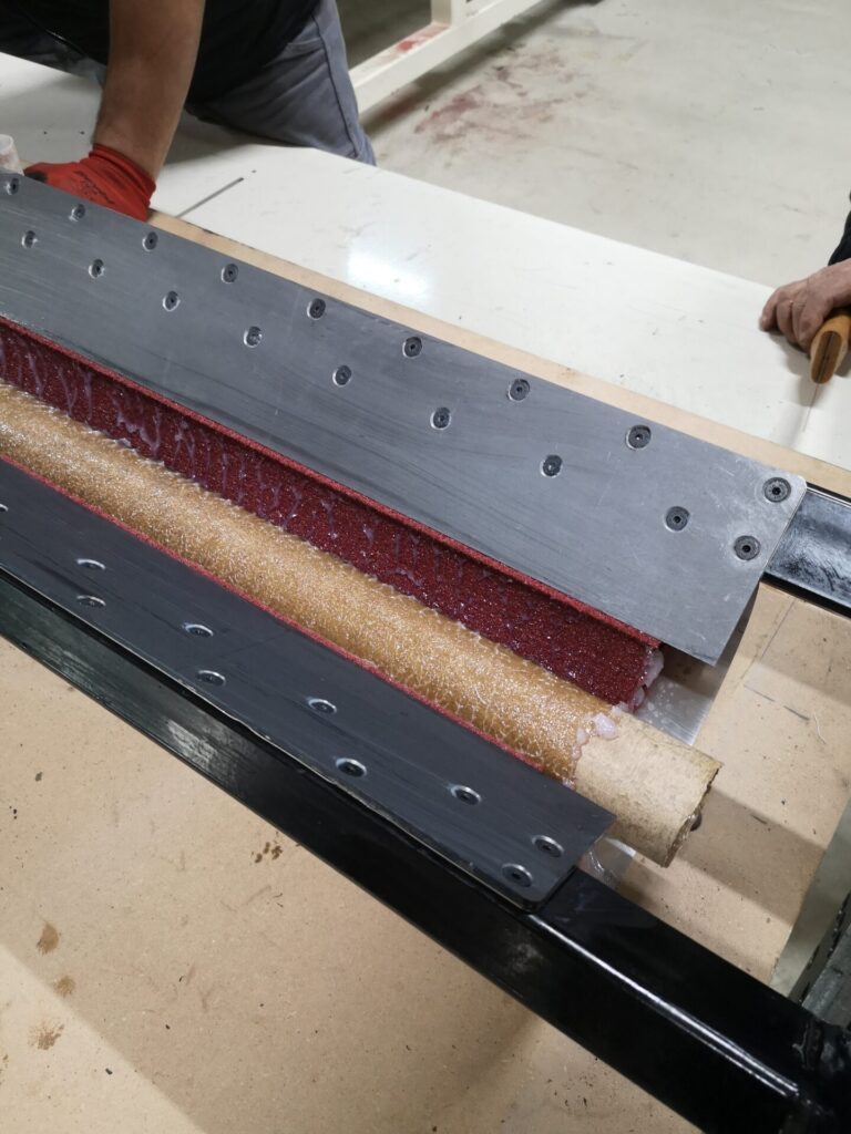 UNIT FOR THE CLOSING OF NON-WOVEN ROLLER MOLDS