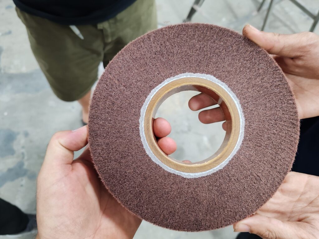 CUTTING AND GRINDING MACHINE FOR NON-WOVEN CONVOLUTE WHEELS