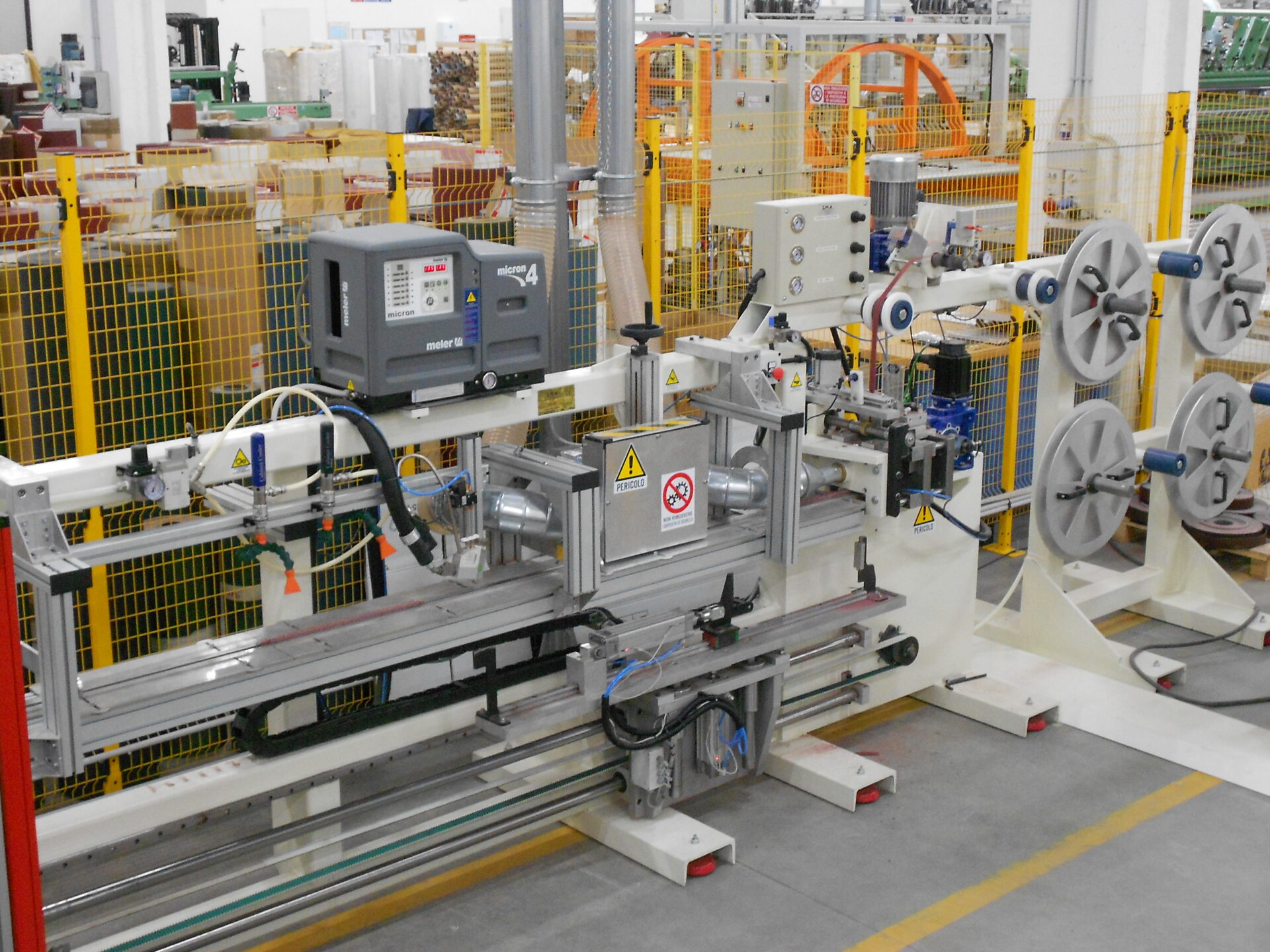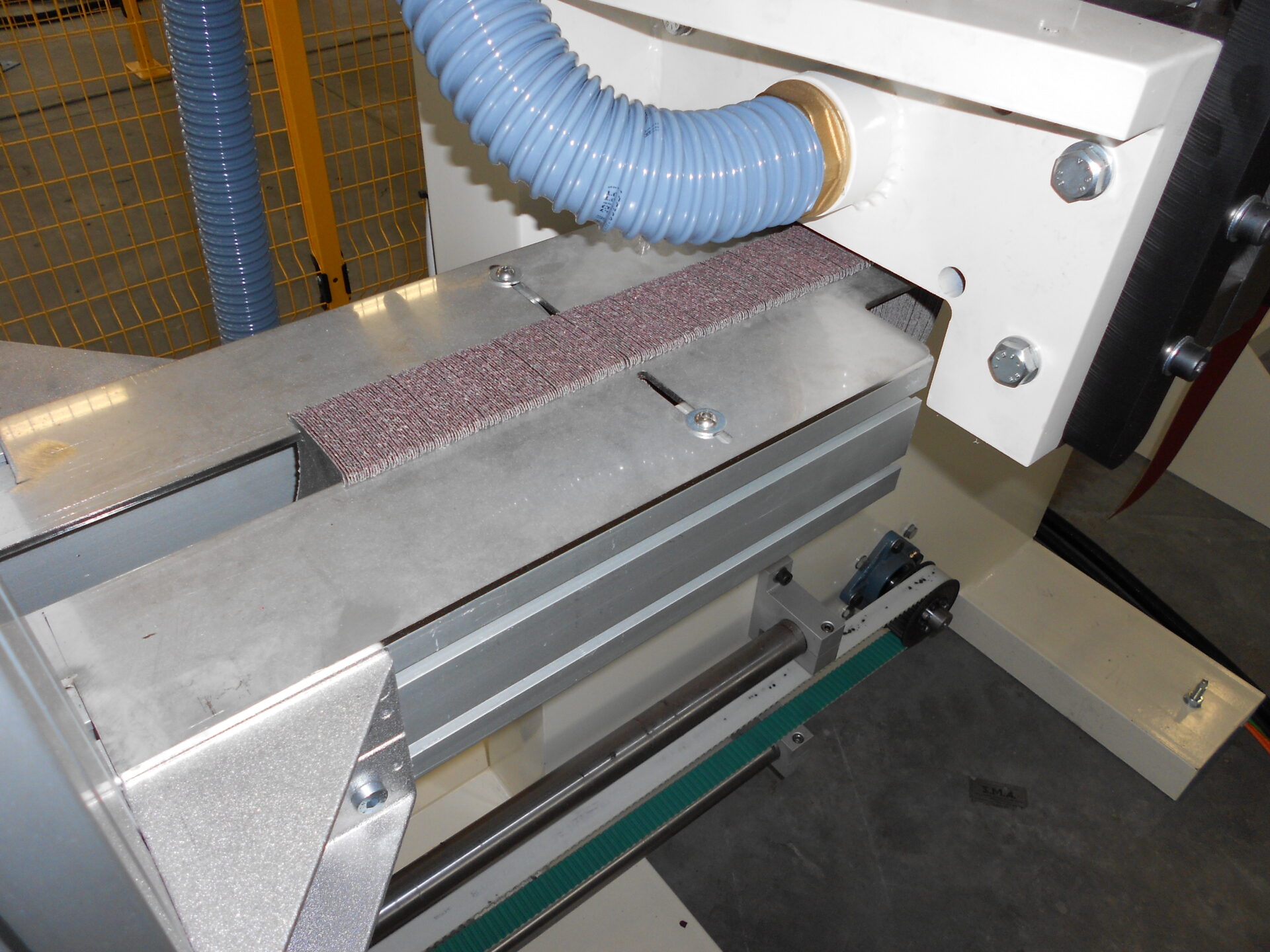 This machine manufactures abrasive cloth wheels with flange, ranging from 165mm to 350mm diameters, and up to a 100mm width. This full automatic machine cuts and applies Hot Melt glue on top of the flap pack. The flap pack is subsequently stored in a unit at the end of the process. It is equipped with a multifunction touch screen panel that can set and store all the operator’s customised programmes.