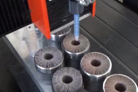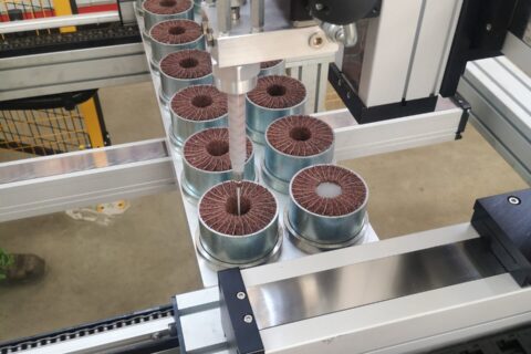 Home » Solutions » Flexible abrasives converting machines » Production of flap wheels with shaft » Wheel bonding