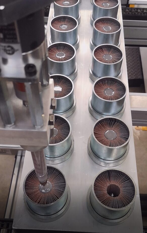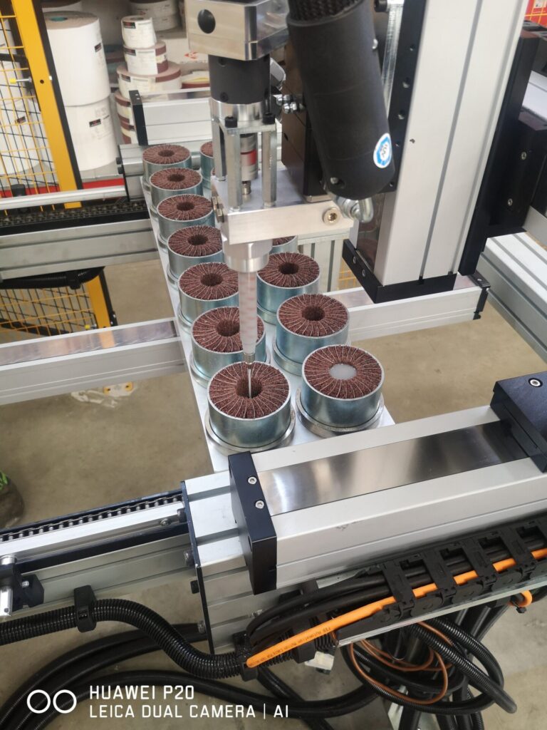 GLUING AND DISPENSING UNIT FOR SHAFT-MOUNTED WHEELS