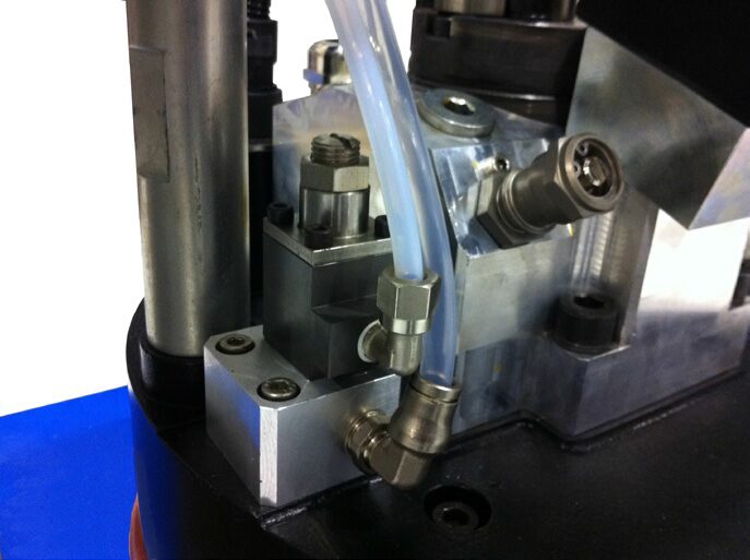 This is a drum unloader for PUR Hot-Melt adhesives. The melting system and the particular dispensing unit provide a homogeneous surface around the bushing, which is made of ABS or Nylon.