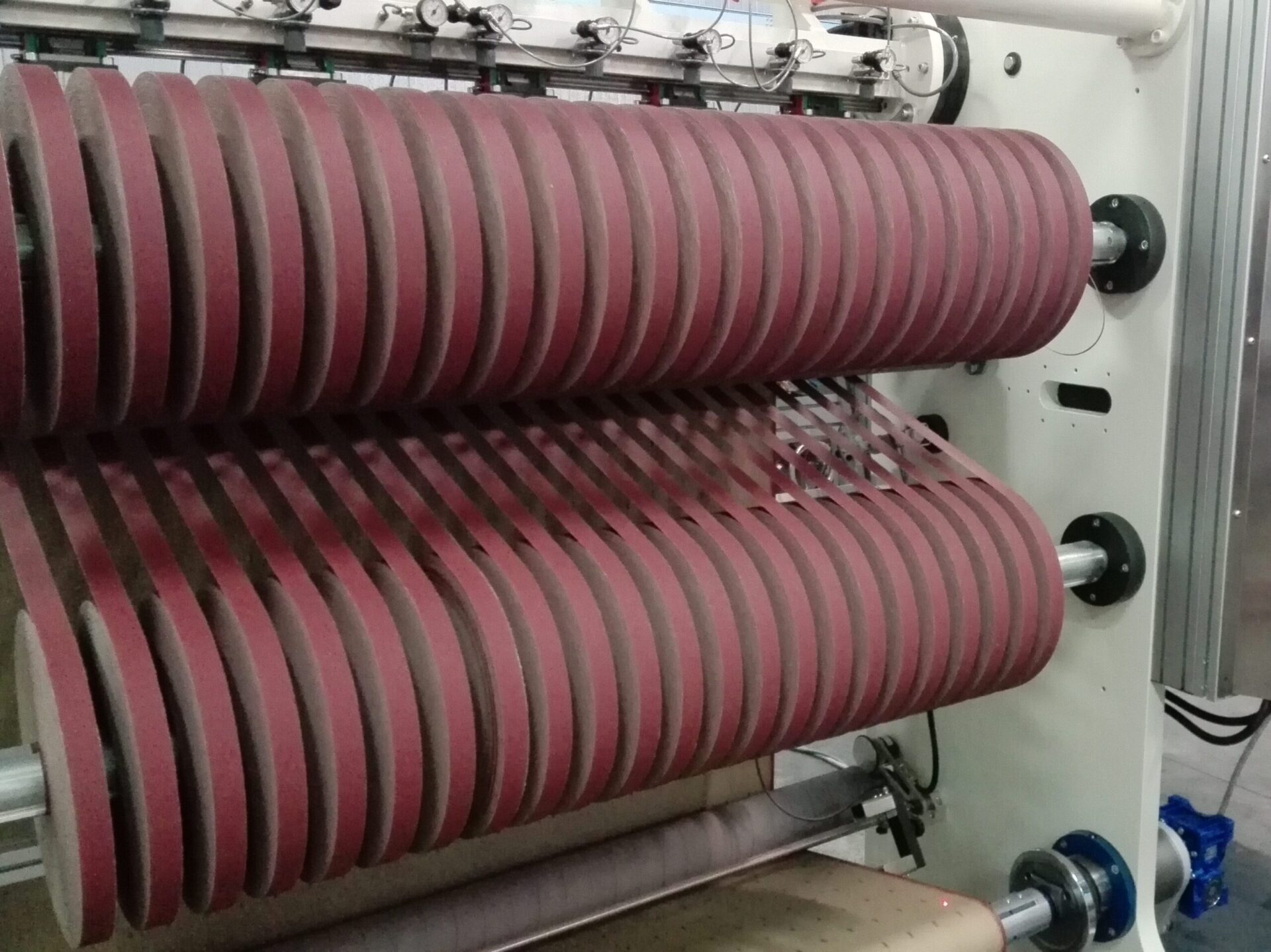 SLITTING/REWINDING MACHINE FOR ABRASIVE ROLLS