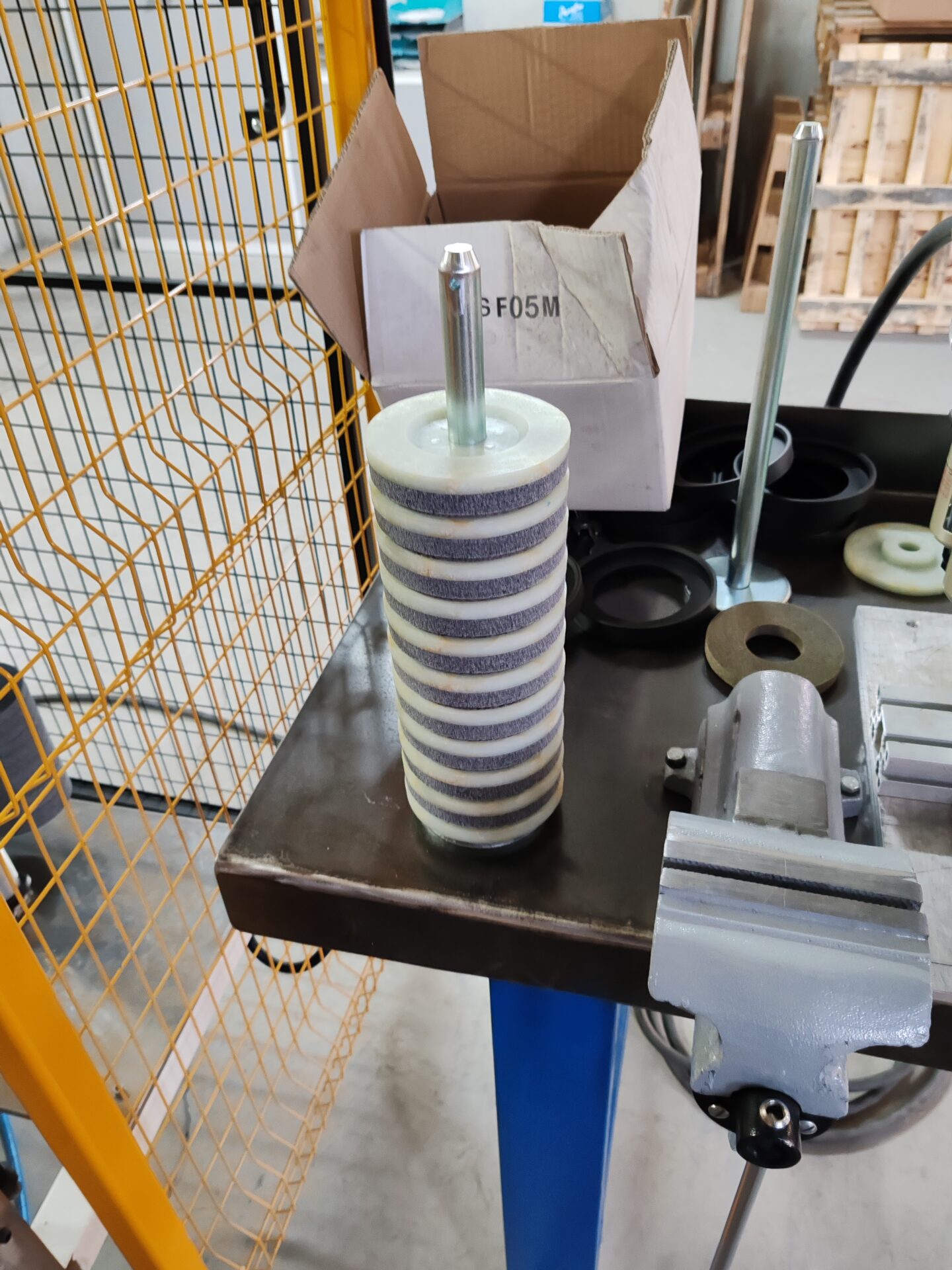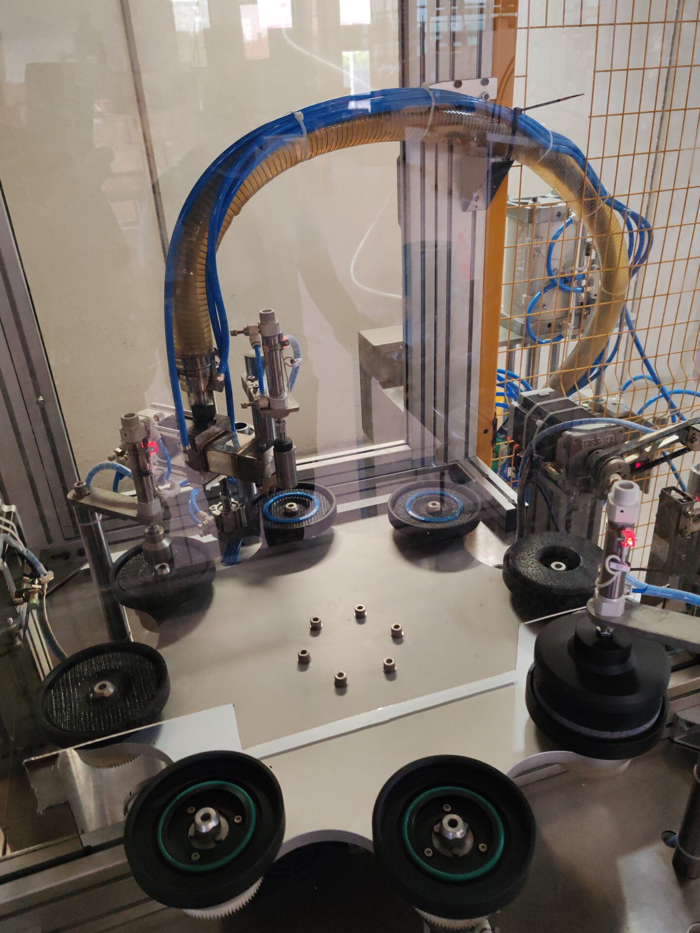 Automatic machine for bonding unitized discs.