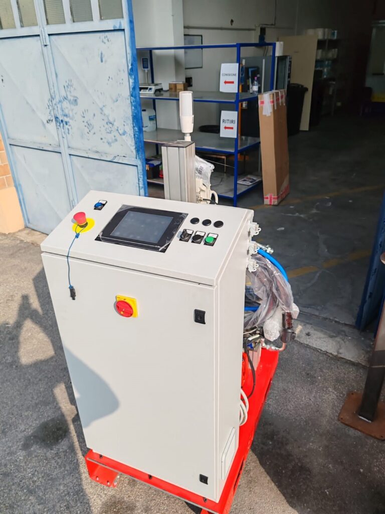 8-inch, touch-screen, operator panel by SYEL with 64Mb RAM, positioned on an IP66 electric cabinet.