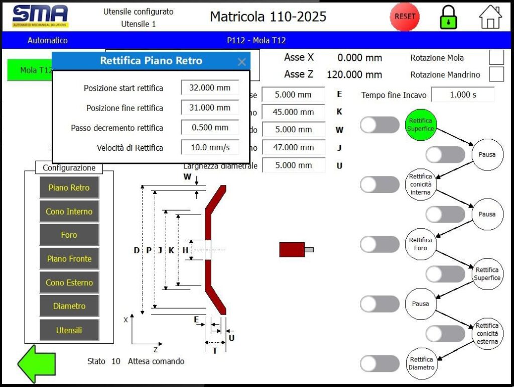 The SMA-TRE-ECO CNC Grinding Lathe is a high-precision machine designed for machining vitrified wheels of any shape and size. It allows both roughing and finishing operations using a rotary tool or a
