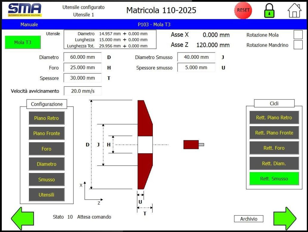 diamond insert, mounted on a standard tool holder (20×20 mm shank). Thanks to its SMA conversational software, it is extremely easy to use, even for operators without CNC programming experience. Its low operating cost and minimal maintenance make it the ideal machine for continuous production in small and medium-sized workshops.