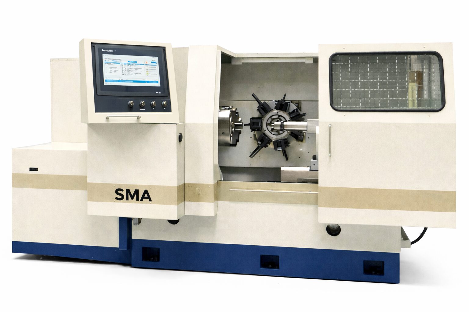 The SMA-TRE CNC Grinding Lathe is a high-precision machine designed for machining vitrified wheels of any shape and size. It allows both roughing and finishing operations using a rotary tool or a