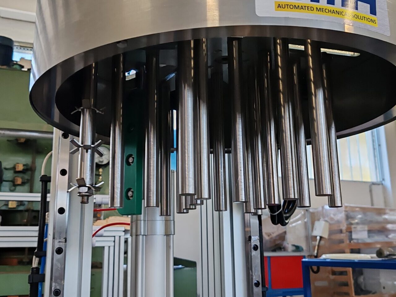 Safety microswitch on cover and inspection doors. Emergency mushroom stop in compliance with EN ISO 13850. Fixed and movable guards made of steel or transparent polycarbonate to ensure visibility of the bowl interior in complete safety.